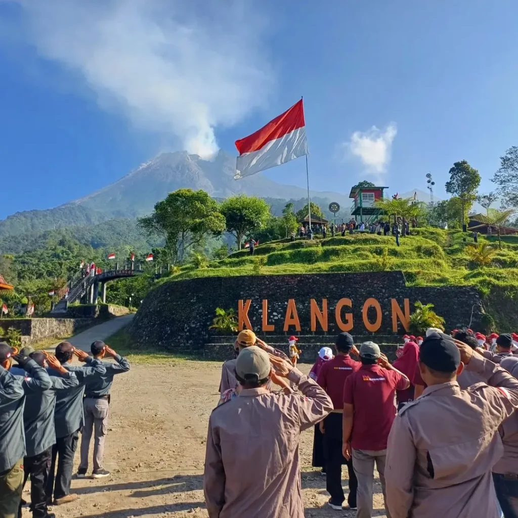 KLANGON, YOGYAKARTA — Bukit Klangon, destinasi wisata yang dikenal dengan pemandangan langsung ke megahnya Gunung Merapi, kembali menjadi lokasi upacara peringatan Hari Kemerdekaan Republik Indonesia. Pada tanggal 16 Agustus 2025, ratusan orang dari berbagai kalangan berkumpul sejak pagi hari untuk mengikuti agenda tahunan yang telah menjadi tradisi di desa wisata ini.